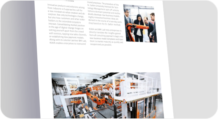 Business Model Innovations inured practices. The procedure of the St. Gallen University Institute for Tech- Innovative products and solutions arising nology Management spin-o昀昀 unlocks from Industrie 4.0 approaches call for hitherto dormant potential and metho- a new mindset on value creation and ab- dically develops new business models. sorption. Not only technologies change, Highly innovative business ideas are but also how customers and other stake- devised in the course of a two-day work- holders in the extended ecosystem shop based on the St. Gallen method. interact. Consolidating market position in the age of digital change hinges on 阀阀 and BMI Lab help enterprises to setting yourself apart from the crowd directly translate the insights gained with services, tapping new sales channels, from all consulting approach stages into or establishing new payment models. new business model templates and ripen Along with its solution partner BMI Lab, them to market maturity as quickly and 阀阀 enables enterprises to transcend inexpensively as possible. 58�59