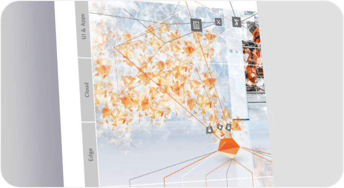 KUKA Digital Domains Smart transformation to the digital world UI & Apps User Interface Cloud e Edg Shop 昀氀oor Hello Industrie 4.0�we connect you