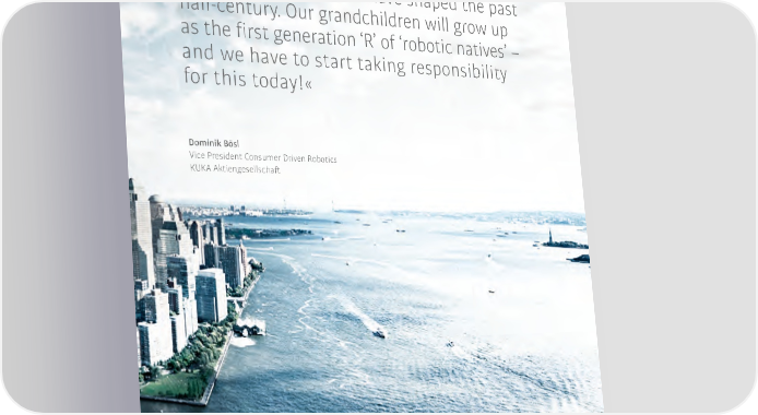 阀阀 Industrie 4.0�Glossary » Robotics, automation technology and digitization will shape the next half-century in the same way that the internet, smart- phones and computers have shaped the past half-century. Our grandchildren will grow up as the 昀椀rst generation ‘R’ of ‘robotic natives’ – and we have to start taking responsibility for this today!« Dominik Bösl Vice President Consumer Driven Robotics 阀阀 Aktiengesellschaft
