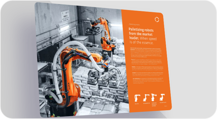 �Palletizing robots Palletizing robots from the market leader. When speed is of the essence. Largest possible work envelope, minimized interference contour and maximum robustness. 阀阀 palletizing robots combine everything that is required for perfect automation. As the leading palletizer manufacturer, 阀阀 covers the payload range of 40 to 1,300 kilograms, with an unparalleled variety of robots. All of our palletizing robots are specially designed for demanding palletizing and depalletizing tasks. The result is short cycle times and increased throughput combined with low space requirements and high cost-e昀昀ectiveness. Powerful. The robots from 阀阀 are among the fastest palletizers on the market – while also o昀昀ering extreme precision and repeatability. With their streamlined, lightweight design, 阀阀 palletizing robots achieve greater dynamic performance, shorter cycle times and higher throughput – even in confined spaces. Versatile. A wide range of di昀昀erent payload capacities, reaches and special variants en- sure that our customers always find the right solution, no matter how challenging the palletizing task. All interfaces and energy supply systems are designed for versatility. Compact. The compact and streamlined design of all robots for palletizing enables their simple integration into existing systems. Their low interference contours ex- tend the e昀昀ectively usable workspace and allow innovative cell concepts. Low maintenance. All components of 阀阀 palletizing robots are equipped with low-wear drive trains. Thanks to their advanced and robust design, they have extremely long maintenance intervals – with an availability of 99.995 percent and maximum energy e昀昀iciency. KR 40 PA KR QUANTEC PA KR 300-2 PA KR 1000 titan PA KR 470-2 PA KR 700 PA 052_053