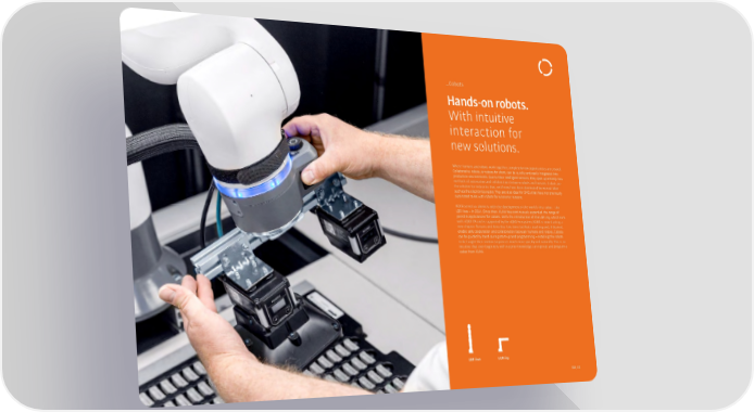 �Cobots Hands-on robots. With intuitive interaction for new solutions. Where humans and robots work together, completely new opportunities are created. Collaborative robots, or cobots for short, can be quickly and easily integrated into production environments. Due to their intelligent sensors, they open up entirely new methods of automation and collaboration between robots and humans. Cobots are the solution for industries that, until now, have been dominated by manual labor – such as the electronics sector. They are also ideal for SMEs that have not previously automated tasks with robots for economic reasons. 阀阀 served as pioneers with the development of the world’s first cobot – the LBR iiwa – in 2014. Since then, 阀阀 has continuously expanded the range of possible applications for cobots. With the introduction of the LBR iisy, which runs with iiQKA.OS and is supported by the iiQKA Ecosystem, 阀阀 is now starting a new chapter. Sensors and fenceless functions facilitate teaching and, if desired, enable safe cooperation and collaboration between humans and robots. Cobots can be guided by hand during start-up and programming – enabling the robots to be taught their motion sequences much more quickly and naturally. This is so intuitive that even beginners with no prior knowledge can operate and program a cobot from 阀阀. LBR iiwa LBR iisy 010_011