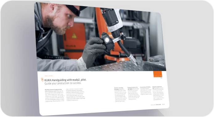 �Robot controller click for more 阀阀.Handguiding with ready2_pilot. Guide your production to success. Teaching instead of programming. robot is all that is required to teach it Intuitive, reorienting Freedom of motion to the Connectivity and flexibility. Adaptable navigation but- Robot handling is easier than ever. As the desired sequences. From precise 6D mouse. Operation of right degree. Move the robot The wireless concept of tons. Two buttons on the side the world’s first control package of its welding to rough palletization, and from 阀阀.ready2_pilot is child’s exclusively on the desired 阀阀.ready2_pilot is compat- of the 6D mouse enable quick type, 阀阀.ready2_pilot makes robot small robots such as the 阀阀 KR AGI- play and is carried out using paths by simply deacti- ible with all standard 阀阀 access to freely selectable control mere child’s play. The package is LUS to heavy-duty giants such as the an intuitive 6D mouse with vating directions that are robots and o昀昀ers maximum functions. From opening and quickly mounted on the robot and can 阀阀 KR 1000 titan, 阀阀.ready2_pilot no training required. Fas- not required. This prevents freedom for operator control. closing a gripper to adjusting be used immediately, without complex enables you to easily master a wide range tened with adapter plates, unintentional slipping during process parameters or saving programming. Manual guidance of the of di昀昀erent requirements. this mouse can be used from motion and saves time-con- motions in the robot pro- di昀昀erent positions, always suming corrections. gram – a simple click su昀昀ices within the user’s reach. and saves precious time. Product portfolio_Robot controller 124_125