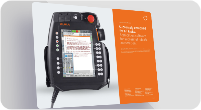 _Application software Supremely equipped for all tasks. Application software for successful robotic automation. The software options are tailored to the most common robot applications – each ap- plication is easy to program, ensuring high process reliability. The optional features can be installed on the controller easily and quickly and can also be tailored to the specific production environments. KUKA.VisonTech KUKA.EqualizingTech KUKA.ArcTech KUKA.SeamTech KUKA.CNC KUKA.RoboSpin KUKA.TouchSense KUKA.Gripper&SpotTech KUKA.ServoGun KUKA.Tracc TCP KUKA.PalletTech KUKA.ProcessScreen KUKA.LaserTech KUKA.PickControl KUKA.HMI KUKA.ForceTorqueControl KUKA.SmartBinPicking KUKA.ConveyorTech 126_127
