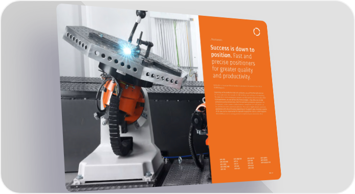 �Positioners Success is down to position. Fast and precise positioners for greater quality and productivity. 阀阀 o昀昀ers a broad portfolio of workpiece positioners for payloads from 250 to 12,000 kilograms. Depending on the production task and workpiece, you will find the right solution for every application. For example, for ARC welding, spot welding or metalworking. The objective of every automation solution is to boost productivity and quality. With 阀阀 positioners, you can achieve this from all angles – they allow you to align workpieces quickly and precisely. Ideal for automating production operations. For this purpose, service-proven standard robotics components are used, which can be combined to form customized solutions. The result is highly dynamic automatic positioners with one to five axes. Depending on the specific task, kinematic systems of all sizes can be implemented for payloads ranging from 250 to 12,000 kilograms. With 阀阀 you are in a strong position to implement your automation ideas. KP1-MB HW KP1-V2T M KP3-V2MD KP1-MD KP1-MD HW KP1-V DKP HW KP5-V2S2V KP1-MDC KP1-H KP2-HW KP5-V2H2V HW KP1-MDC HW KP1-HC KP3-V2H KP1-MC KP1-V2T KP3-H2H 086_087
